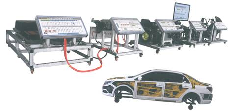 (北汽EV200純電動汽車) 鋰動力電池組、電池管理系統(tǒng)BMS、維修開關(guān)、輔助蓄電池(12V45AH)、高壓配電箱、漏電傳感器、車載充電機(jī)、國標(biāo)充電插座與充電槍、直流接觸器(包含充電繼電器、總正繼電器、總負(fù)繼電器、預(yù)充繼電器)、急停開關(guān)與電源總開關(guān)、一體化全鋁合金型材搭建的移動臺架(1500×700×1700mm ,帶自鎖腳輪裝置,帶安裝檢測端子的原理面板1448×940mm)、故障考核系統(tǒng)、設(shè)備操作說明書。