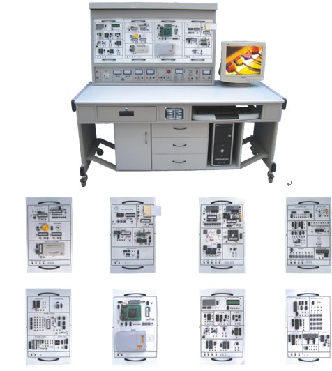 本裝置由控制屏、實驗掛箱、實驗桌組成,通過本實驗臺可完成單片機的接口擴展、數據采集、數據顯示、鍵盤控制、定時器、打印機接口等實驗,配備有仿真器。