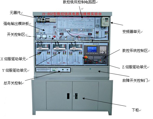 近年來,隨著數(shù)控技術(shù)的廣泛應(yīng)用,學(xué)校越來越注重培養(yǎng)生產(chǎn)、技術(shù)服務(wù)等崗位需求的實用型、技能型專門人才,進(jìn)一步提高學(xué)生的動手能力和分析解決問題的能力,全面學(xué)習(xí)掌握數(shù)控系統(tǒng)的控制原理、數(shù)控編程、電氣設(shè)計方法及安裝調(diào)試與維修。但是,大多數(shù)高校面臨缺乏此類的數(shù)控培訓(xùn)設(shè)備。為此,本公司開發(fā)了數(shù)控車床電控系統(tǒng)原理及調(diào)試維修實驗臺實習(xí)裝置。使用該裝置可以使學(xué)生掌握數(shù)控車床系統(tǒng)控制原理、電氣設(shè)計方法、元器件的選擇、車床電氣安裝及調(diào)試、故障診斷維修、零件程序編制及圖形模擬加工過程等多項實驗內(nèi)容,達(dá)到工業(yè)生產(chǎn)現(xiàn)場實習(xí)效果。該裝置采用開放式結(jié)構(gòu)、模塊化設(shè)計,既可用于教學(xué)、也可用于課程設(shè)計、畢業(yè)設(shè)計和實訓(xùn),有利于提高學(xué)生設(shè)計數(shù)控機床電氣控制系統(tǒng)、診斷數(shù)控設(shè)備故障的能力,使受訓(xùn)對象最大限度地適應(yīng)和滿足市場需求。該裝置也可以幫助科研技術(shù)人員進(jìn)一步了解數(shù)控車床結(jié)構(gòu),同時也為技術(shù)人員進(jìn)行數(shù)控車床系統(tǒng)的二次開發(fā)提供了必要條件。該實驗裝置的主要器件均選用工控產(chǎn)品。